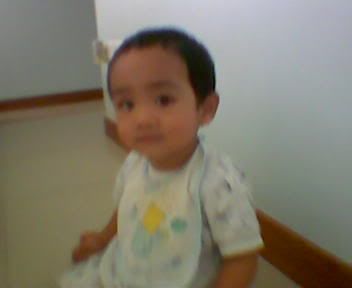 Someone test my patience today...arghhh... feeling like giving her one tight slap on the face. Nasib baik aku ni penyabar jugak kalau tidak...........*#(&@(#^)_)*#@&#)......... hmmmm.....I'm really piss-offffff sey!!!!!.... Tengah marah2 ni skali my sis mms me HD photo. She just wanna let me see what my son is doing now.. Hapi sikit tgk gambar dia walaupun image dia blurr sikit but he is still adorable.......